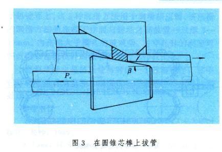 (1)圆锥芯棒拔管(图3),同一般短芯棒相比拉杆力Pc小。